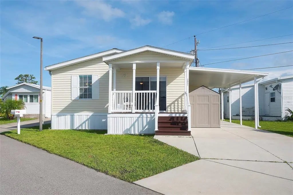 This home's entrance is handicap accessible with a side-entry electronic wheelchair lift, ( $14,000 value) making it ideal for all mobility levels. Additional perks include window treatments, decorative lighting, crown moldings, fresh paint, light and bright kitchen with center island and an attached storage area for your beach gear or tools. Located in a member-owned, CO-OP community, Mobile Estates offers incredible value with a low monthly fee of just $215, which includes water, sewer, and yard maintenance! Enjoy a wide array of amenities including a heated and chilled pool, spa, shuffleboard courts, community center, and a calendar full of social activities, including dinner gatherings,cards,karoke, dance nights, community interest events and so much more. Whether you’re a seasonal snowbird or a year-round resident, you’ll appreciate the convenient “lock-and-leave” lifestyle, active community spirit, and unbeatable location near dining, shopping, and world-renowned beaches.