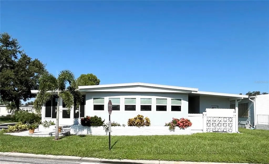 This spacious corner lot home is conveniently located within view of the clubhouse and close to both access gates in the ONLY Resident Owned Park in the City limits of Sarasota!! As you enter the main gate the beautifully landscaped Boulevard takes you right to this 2 bed / 2 bath home. The large living space has lots of windows overlooking the Boulevard and open space. The primary suite has its own private bath with step in shower and the guest bedroom has private access to the guest bath as well. The Florida room gives 200sf of additional living space and the owners have added an outdoor paver patio area and beautiful landscaping.