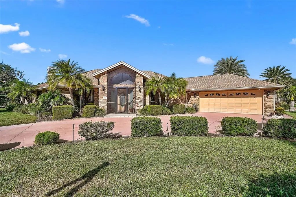 This stately brick home makes an impression from the moment you arrive, featuring a circular driveway and a spacious two-car garage. Step through the front door and enjoy a wide-open view straight out to the expansive brick-paver covered lanai and the sparkling pool beyond. This outdoor living area includes a half bath, an outdoor kitchen space, and a convenient pass-through from the main kitchen—perfect for entertaining. Privacy abounds!