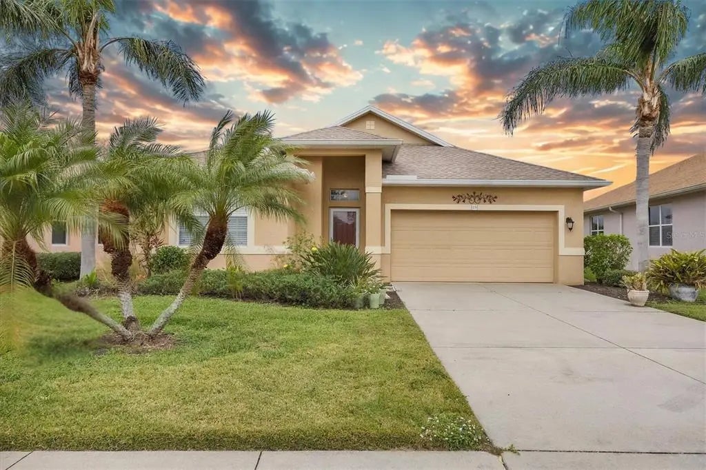 Under contract-accepting backup offers. Welcome to this beautifully maintained LAKEFRONT, POOL home located in the resort style community of Lakeside Plantation. Lovingly cared for and thoughtfully upgraded, this residence offers the perfect opportunity to enjoy the Florida lifestyle at its best. For those seeking a truly turn-key property, the furnishings and household items are available to purchase as a separate package, featuring a warm blend of tropical and vintage-inspired décor that creates an inviting, move-in ready atmosphere. Nestled in a private location with serene views of the lake and wooded preserve, the home provides a peaceful backdrop for everyday living. Step outside to your own oasis, complete with a HEATED, IN-GROUND SWIMMING POOL, perfect for relaxing in the sunshine and floating the day away. This desirable floor plan features an open-concept great room, ideal for both gatherings and quiet evenings at home. High ceilings, crown molding, gleaming wood-finish flooring, and upgraded light fixtures enhance the space with elegance and charm. Abundant natural light pours in, creating a warm and airy feel throughout. The kitchen is thoughtfully designed with wood cabinetry, a center island, breakfast bar, and a convenient pantry that provides extra storage space. The oversized primary suite highlighted by a tray ceiling with crown molding, two walk-in closets, dual sinks, and a luxurious walk-in shower. Guest bedrooms are thoughtfully positioned on the opposite side of the home, ensuring privacy for family and guests. Peace of mind comes with many updates already completed: NEW Roof (2023), AC and WiFi thermostat (2019), New smoke detectors, surge protection in electric panel, Garage door opener (2021), dishwasher & garbage disposal (2023), and Pool pump motor (2023). Not located in a flood zone - no flood insurance is required! Low HOA fees – only $286 quarterly (includes lawn care!) and the CDD fee is included in the property tax bill. Lakeside Plantation is known for its active and welcoming atmosphere. Residents enjoy access to a community center with year-round heated pool and spa, tennis, pickleball, and basketball courts, fitness center, library, and a large clubhouse that hosts regular activities and events. Located just 30 minutes from award-winning Gulf beaches and minutes from shopping, dining, and entertainment, convenience is at your doorstep. Whether you’re searching for a year-round residence or a seasonal retreat, this home offers unbeatable value in today’s market with its desirable location, private pool, and thoughtful updates. It’s truly priced to sell.