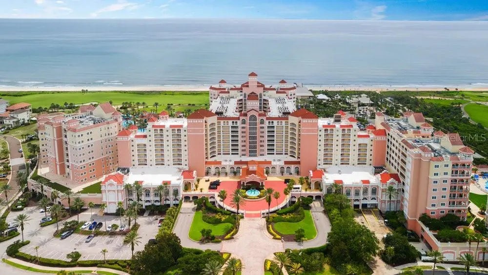 Discover an exquisite 3-bedroom, 3-bathroom 9th-floor condo at Hammock Beach Resort in Northeast Florida, offering over 1,600 square feet of pristine oceanfront living with stunning views of both the lush golf course and majestic ocean. This property, ideal as a vacation retreat or full-time residence, comes with a Beach Club Membership that transfers to new owners at no cost, SAVING $15,000, and is well-established in the resort’s rental program. Bathed in natural light, the condo features elegant luxury vinyl flooring, tray ceilings, crown molding, and professionally selected décor and furnishings INCLUDED, creating a charming and ambiance. The master ensuite serves as a luxurious sanctuary with a private balcony, split double vanities, a spacious soaking tub, a separate shower, and ample storage. The secondary ensuite offers its own private balcony, generous bathroom, and closet space, while the additional bedroom and hall bathroom provide perfect accommodations for guests or a home office. Hammock Beach Resort enhances the lifestyle with world-class amenities, including five pools, a water slide, a lazy river, a full-service spa, an expansive fitness facility, top-tier clay tennis courts, and a signature ocean golf course, though membership is required for access to these amenities and the rental program. Don’t miss your chance to own this slice of Northeast Florida paradise—schedule a private showing today!