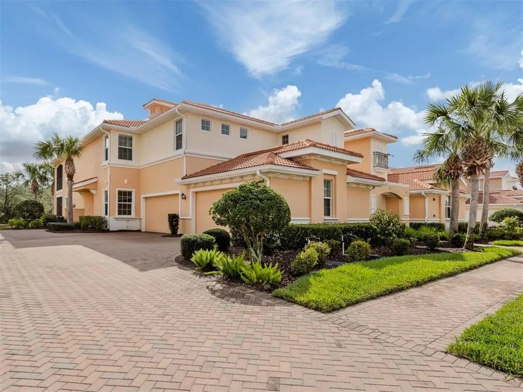 Your own private nature preserve! One of the best lots on Bella Vista Terrace with expansive water view framed by wonderful palm trees. Experience watching nature and wildlife and seeing the sun rise from your lanai. It will be easy to move into this ground floor, fully furnished in Tommy Bahama-style condominium. This home offers a large great room which includes a living room, dining area, fully equipped kitchen and a conversation nook. The kitchen includes a large granite island with a breakfast bar. You will find stainless steel appliances, wood cabinetry and a walk-in pantry. One side of this split floor plan offers two bedrooms, one with a walk-in closet and a hall bath and laundry room leading to the two-car garage. The other side features a spacious primary bedroom with sliding doors to the lanai, walk-in closet and two linen closets. An en suite bath is complete with double sinks and granite countertops; a walk-in, tiled shower and commode room complete the space. All of this in-the amenity rich Venetian Golf and River Club with private restaurant and tiki bar poolside for dining, large pool and separate lap pool, six Har-Tru tennis courts, pickleball courts, gym, aerobic room, and a simply magical ½-mile boardwalk through the jungle down to the Myakka River where you can sit and watch the gators and other wildlife in their natural habitat. Many clubs and social events provide activities to keep everyone busy! All of this is so convenient to the highway, grocery, hospital, fire house, Venice Island and many beaches, including Nokomis beach straight down the road. The way life should be.