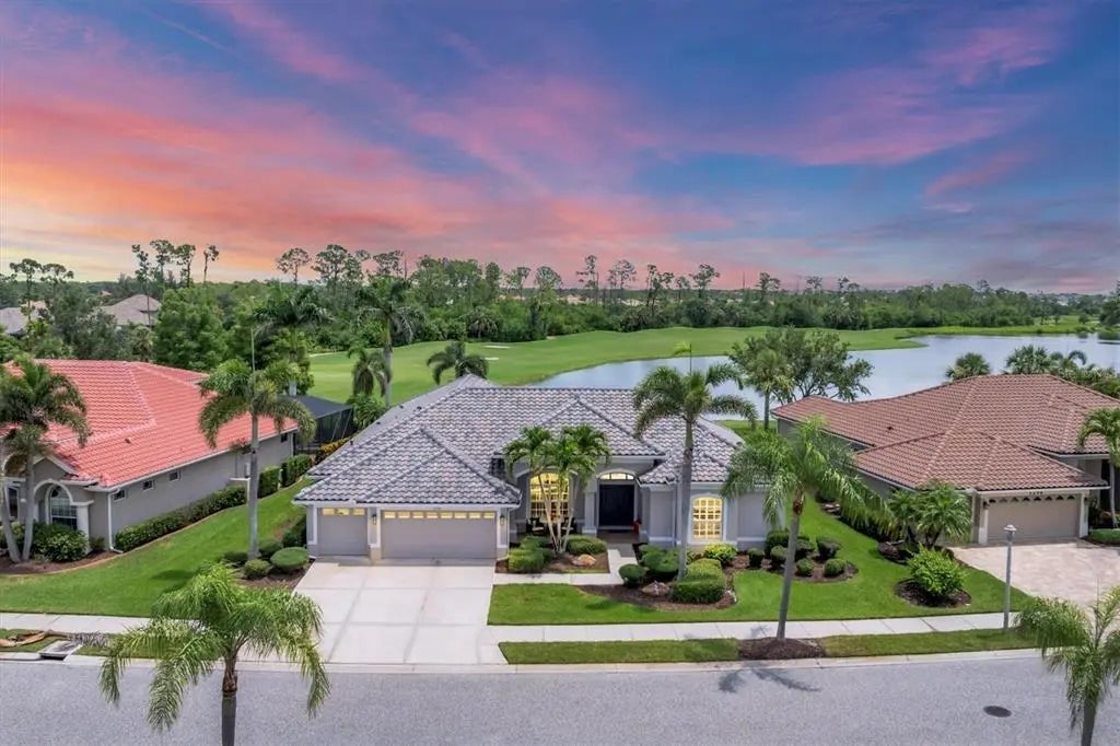 Under contract-accepting backup offers. Sizzling Hot Deal !! MOTIVATED SELLER !!! $40K IN PRICE REDUCTIONS seize the opportunity to make this home uniquely yours. DO NOT hesitate. The seller must be under contract by 8/31 so time is of the essence. HERON CREEK GOLF & CC 3 BED,3 BATHS+ BONUS ROOM/ Pool, Spa & 3 Car Garage Just under 3000 sq ft!! Welcome to SUNRISE VISTA, a casually refined retreat in Heron Creek Golf and Country Club where soft breezes, flowing spaces, and natural light create a truly effortless Florida lifestyle. Perfectly positioned on a .27-acre homesite with sweeping views of the long lake, fairway and #7 Green of the MARSH Course, this 2,924 sq ft residence invites you to experience OPEN-CONCEPT living with a layout that flows seamlessly from room to room. Inside, volume ceilings, soft neutral tones and walls of cascading sliding glass doors give each space a sense of lightness and lift. From the welcoming foyer, the rooms unfold with airiness and ease, guiding you from the living room, and sun filled dining room, to the Great Room and spacious island kitchen. At the heart of the home the kitchen is an absolute standout, showcasing rich wood cabinetry, gleaming granite countertops and ample space for cooking and entertaining with ease .The split bedroom plan ensures privacy and function with two guest suites with two full baths ( one with easy access to pool), while a flexible BONUS ROOM offers the perfect space for a home office, media room or guest retreat. The primary suite is a true sanctuary overlooking the pool and lake beyond and has a spa-like ensuite bath complete with soaking tub, walk-in shower, separate vanities and double walk-in closets. Step outside to the expansive covered lanai where the heated pool and spa take center stage against a backdrop of shimmering water and emerald fairways- ideal for entertaining or simply soaking in the quiet beauty of the tranquil setting. This lovely home is conveniently located just a quick cart ride away to the clubhouse, fitness center, Tennis Courts and all the fine amenities Heron Creek has to offer and well as to the Sumter Crossing Publix Plaza where you can actually find Golf Cart Parking! This home boasts a NEW BARRELL TILE ROOF, NEW GAS POOL HEATER, and many upgrades... including double tray ceilings, Classic plantation shutters, Stamped concrete pool decking, and custom lighting and fans. This home is move-in ready and has been meticulously maintained by one family since it was built! Some furnishings may be available under separate contact. Heron Creek offers exceptional amenities including a 21,000 sq ft clubhouse, 27 holes of Championship golf Arthur Hills design, resort style pool & spa, a robust social activity calendar, fitness center, Tennis courts & formal & casual dining options! Club Membership is required w/ 3 membership levels offered beginning at $278/month *NO CDD FEES * LOW HOA FEES include lawn care, trimming, mulching, irrigation, FIBER OPTIC/ TV/ HIGH-SPEED INTERNET & Gated entry, conveniently located w/easy access to I-75 & US-41, Cocoa Plum Shopping ,Myakkahatchee Creek trails, WELLEN PARK, Braves Stadium, COSTCO & will be just 3 miles to the new 450 Million SMH Hospital Coming to I-75 & Sumter Blvd! FLOOD ZONE X (lenders won't require flood insurance)