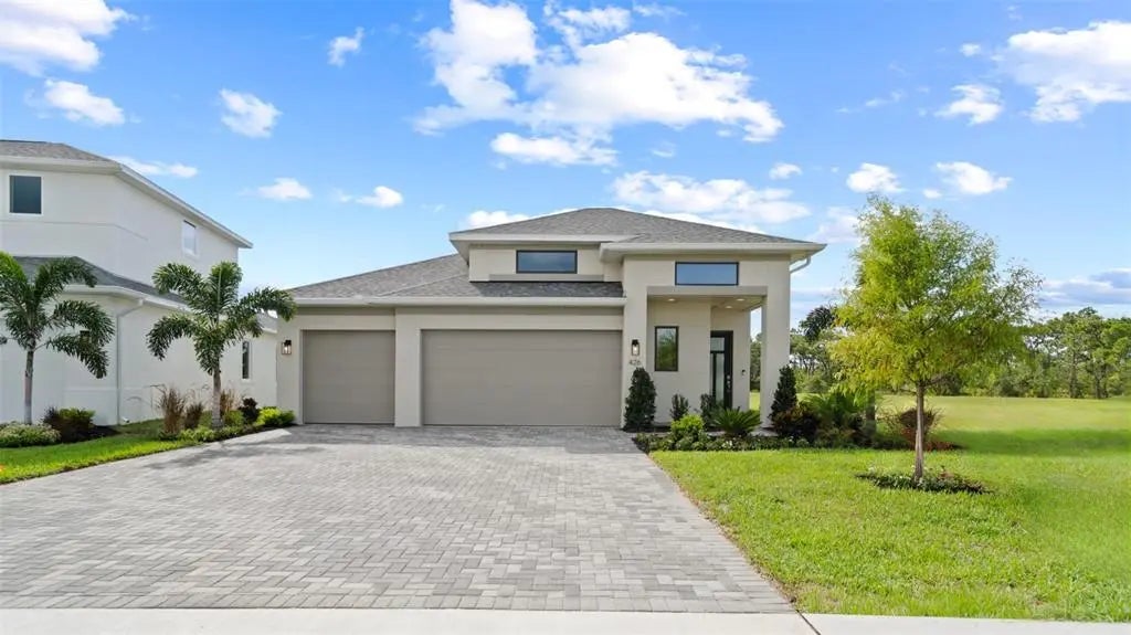 Under Construction. The side entryway off the front porch is lined with windows to let in ample natural light. The kitchen greets you with an island with built-in seating and a corner walk-in pantry. The dining area sets the space for the open concept family room that is embraced by a wall of windows. The backyard features an extended covered lanai. The primary bedroom is at the rear of the home and has three large windows overlooking the backyard. Double doors open into the primary bathroom which has dual vanities, garden tub, glass enclosed shower, and two walk-in closets. Three secondary bedrooms each with walk-in closets and two full bathrooms complete the space. The laundry room and drop zone are off the three-car garage.